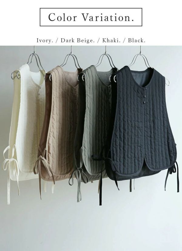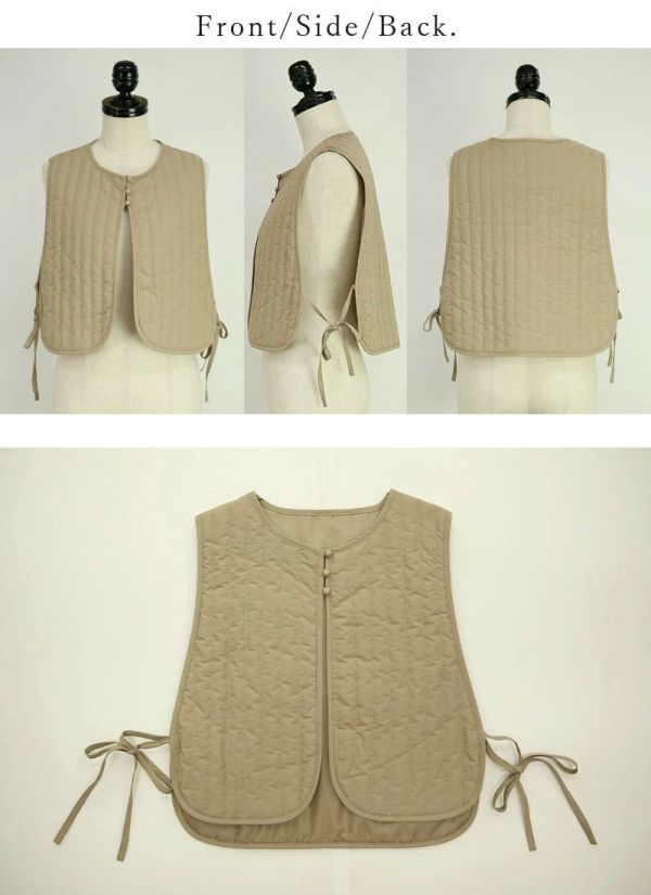 ジレ レディース キルティング ショート ショート丈 トップス ライトアウター 重ね着 レイヤード 大人可愛い お洒落 ナチュラル カジュアル ベスト サイドリボン ボタン 前開き 羽織り カーキ アイボリー ダークベージュ ブラック 黒 白 秋 冬 24aw AW, M-L M L andit_ and it_ andit ANDIT_ ANDIT あんどいっと アンドイット 新作 NEW カジュアル ナチュラル きれいめ 大人可愛い 大人女子 お洒落 トレンド シンプル ニュアンス プチプラ ファッション レディースファッション 20 30 40 50 20代 30代 40代 50代