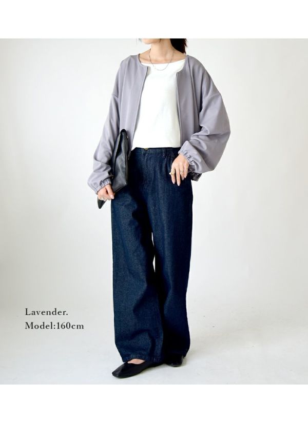 トップス カーディガン カーデ レディース クロップド 羽織り 重ね着 レイヤード 季節の変わりめ 梨地 ショート丈 ワイド ゆったり 楽ちん 体型カバー ノーカラー すっきり ストレッチ 伸縮 シワになりにくい お手入れ楽ちん シンプル 無地 上品 きれいめ ジップ ZIP ファスナー ラベンダー グレージュ ネイビー ブラック 黒 紺 秋 冬 24aw AW, M L andit_ and it_ andit ANDIT_ ANDIT あんどいっと アンドイット 新作 NEW カジュアル ナチュラル きれいめ 大人可愛い 大人女子 お洒落 トレンド シンプル ニュアンス プチプラ ファッション レディースファッション 20 30 40 50 20代 30代 40代 50代