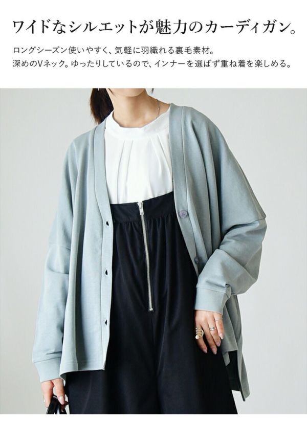 トップス カーディガン カーデ レディース Vネック スウェット 裏毛 ワイド 羽織り 羽織 長袖 ゆったりサイズ ゆったり 楽ちん 体型カバー スリット 前後差 抜け感 重ね着 レイヤード 無地 シンプル カジュアル 大人可愛い スモークブルーカーキ ナチュラル 杢グレー ブラック 黒 白 秋 冬 24aw AW, M-L andit_ and it_ andit ANDIT_ ANDIT あんどいっと アンドイット 新作 NEW カジュアル ナチュラル きれいめ 大人可愛い 大人女子 お洒落 トレンド シンプル ニュアンス プチプラ ファッション レディースファッション 20 30 40 50 20代 30代 40代 50代
