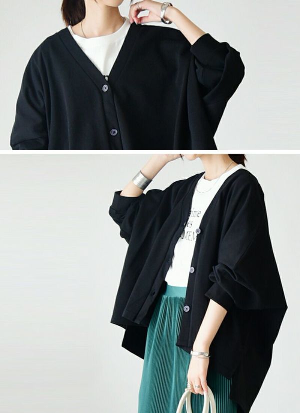 Vネックスウェットワイドカーディガン M-L 【メール便対応不可】