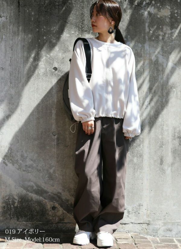 バルーンスリーブ×バッグフリルが大人可愛い1枚。裾のドローコードでシルエットも調整できシンプルながらも女性らしさをプラス!