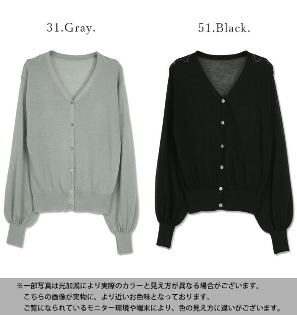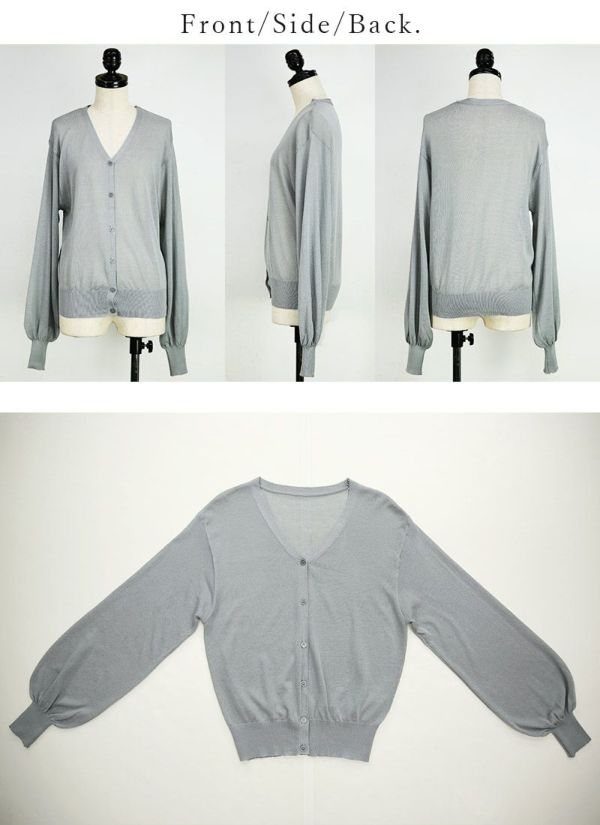 トップス レディース カーディガン ボリュームスリーブ ぽわん袖 シアー カーディガン シアーカーデ 透け感 涼感 涼しい 肌見せ カジュアル シンプル 無地 大人可愛い 重ね着 レイヤード ショート丈 ボタン 長袖 冷房対策 羽織り グレー ブラック 黒 F andit_ and it_ andit ANDIT_ ANDIT あんどいっと アンドイット AW 新作 NEW カジュアル ナチュラル きれいめ 大人可愛い 大人女子 お洒落 トレンド シンプル ニュアンス F Fサイズ フリー フリーサイズ 夏服 秋服 ゆったり 楽ちん ラフ 体型カバー ぽっちゃり プチプラ ファッション レディースファッション ママ服 20 30 40 50 20代 30代 40代 50代