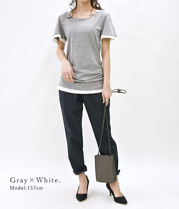 他の画像を見る Tシャツ あの大人気のフェイクレイヤードカットソーから半袖verが登場!!まるで重ね着しているかのようなデザインが可愛い★ フェイクレイヤードくしゅくしゅシャーリング半袖カットソー 【メール便対応可】 販売価格 ¥ 2,899 税込 カートに入れる お気に入りに登録する