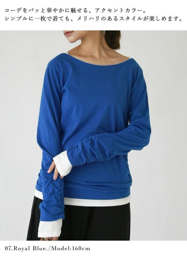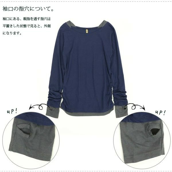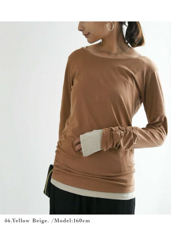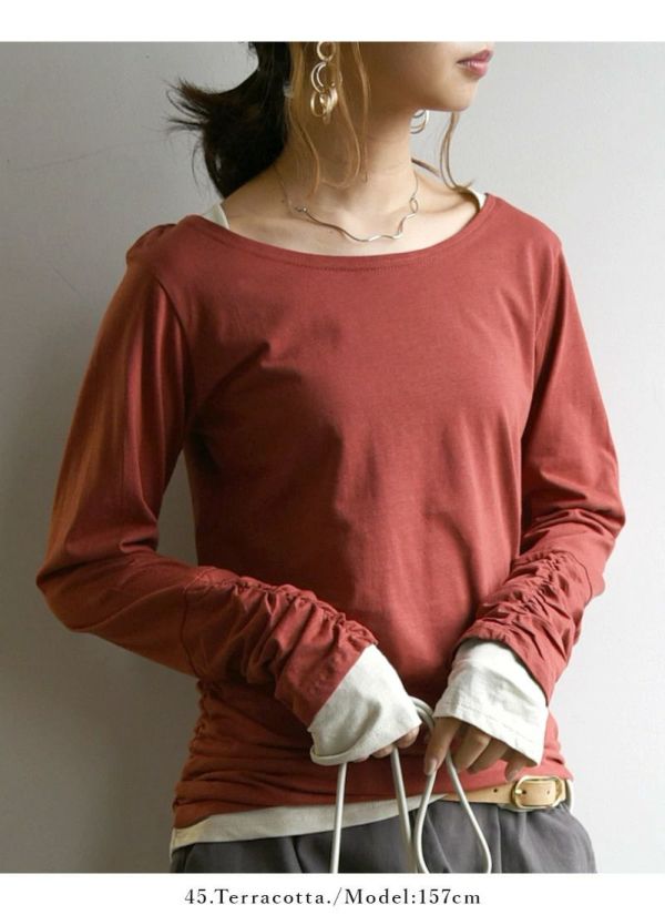 - フェイクレイヤードくしゅくしゅシャーリングカットソー M L LL 3L 4L 【メール便対応可】