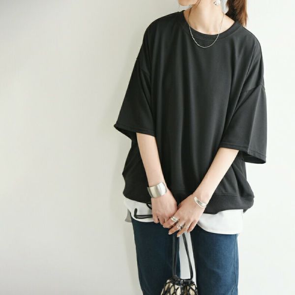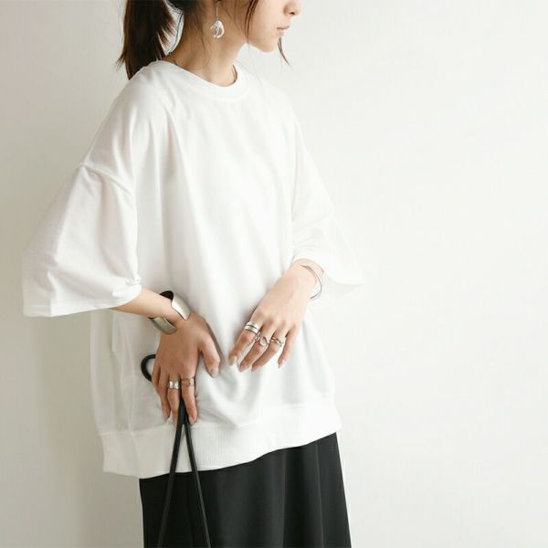 カットソー レディース 春 夏 ショート丈 裏毛 プルオーバー トップス 半袖 五分袖 二の腕カバー 無地 ホワイト ブラック グレー 白 黒 F フリー フリーサイズ andit_ and it_ andit ANDIT_ ANDIT あんどいっと アンドイット SS 新作 NEW カジュアル ナチュラル きれいめ 大人可愛い 大人女子 お洒落 トレンド シンプル ニュアンス ゆったり 楽ちん ラフ 体型カバー ぽっちゃり プチプラ ファッション レディースファッション ママ服 20 30 40 50 20代 30代 40代 50代