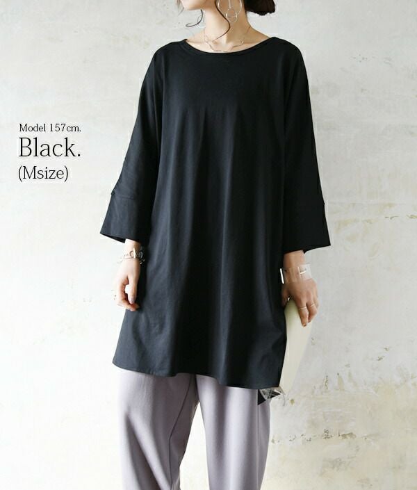 【受注発注】カットソー 長袖 レディース 七分袖 コットン7分袖オーバーロングTシャツ 【メール便対応可】