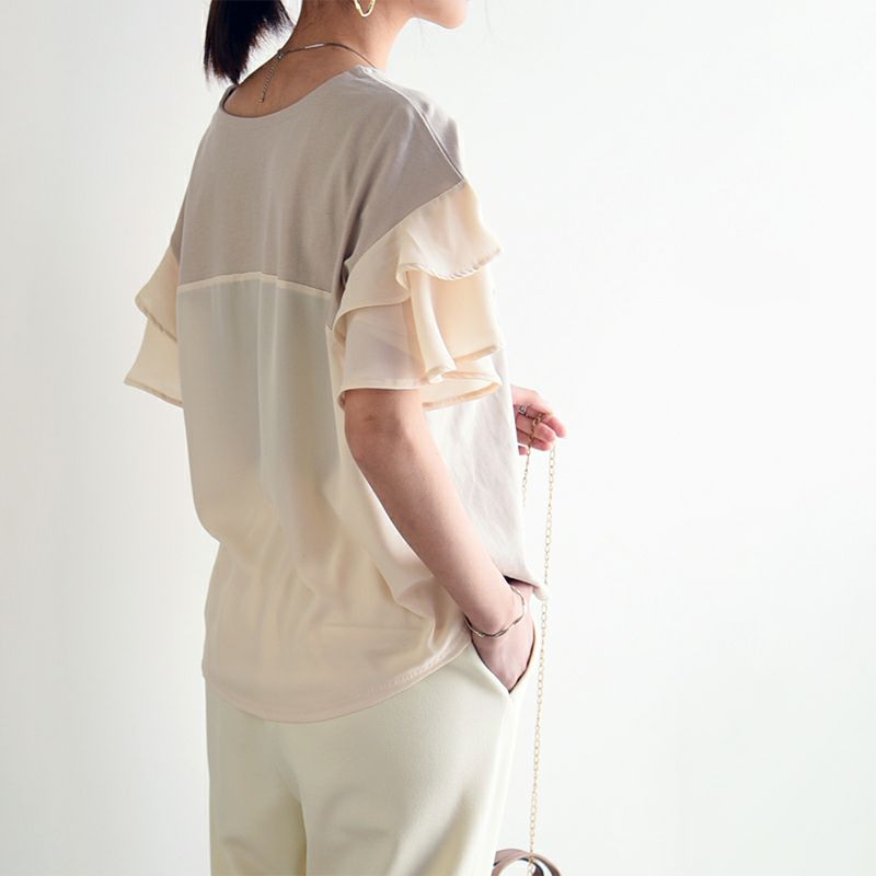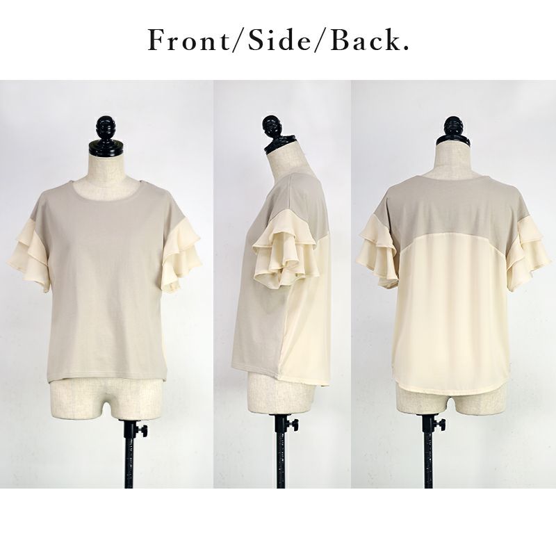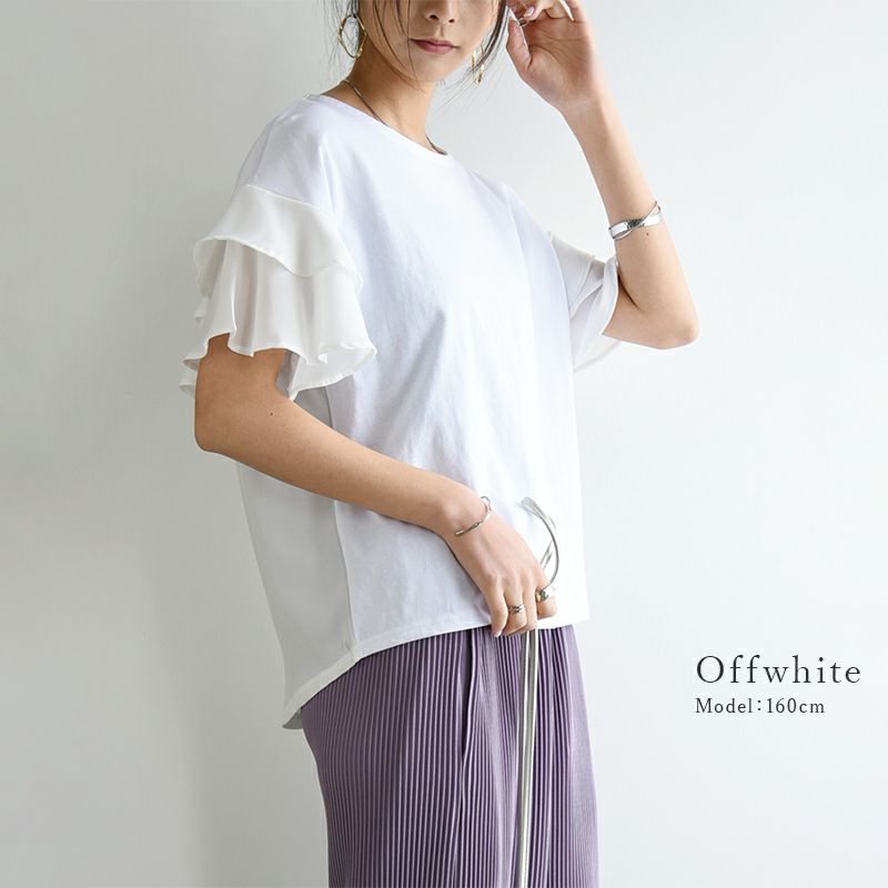 他の画像を見る 袖のフリルと後ろ姿も可愛い♪シンプルで上品なコーデが仕上がるカットソー。 異素材切替ティアード袖プルオーバー M 【メール便対応可】 販売価格 ¥ 4,199 税込 カートに入れる お気に入りに登録する