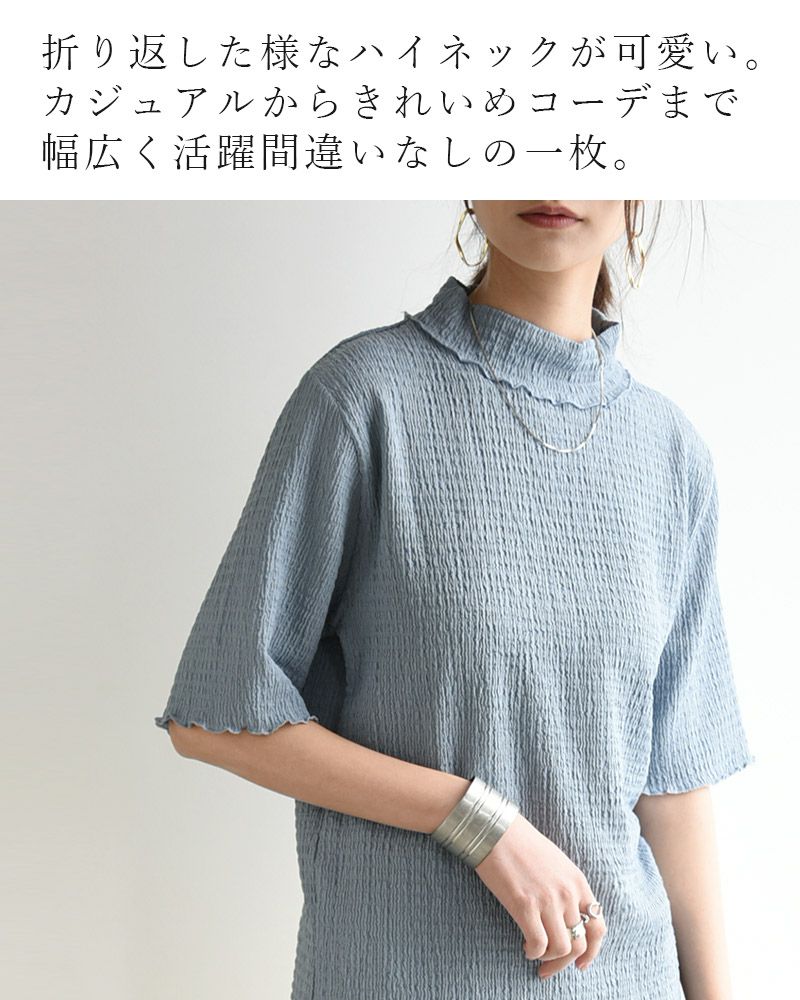 他の画像を見る 存在感のある主役級トップス☆メロウ仕立てが可愛く、着回しにも大活躍! カットシャーリングハイネック5分袖Tシャツ M 【メール便対応可】 販売価格 ¥ 3,499 税込 カートに入れる お気に入りに登録する