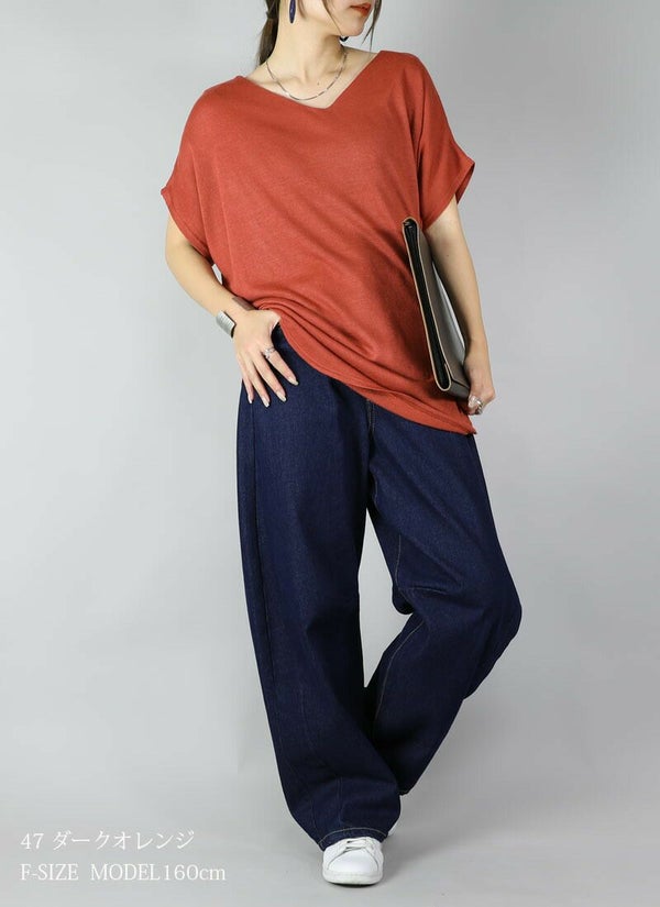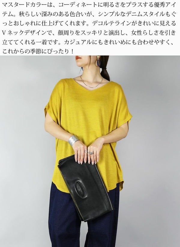 ニット レディース Vネック ドルマン ニットソー トップス 半袖 薄手 軽量 軽い カットソー 日本製 メイドインジャパン 安心 優しい ふんわり シンプル 無地 すっきり 大人 カジュアル ゆったり 楽ちん ラフ 着回し ブルー グリーン マスタード オレンジ ブラック 黒 青 緑 黄色 秋 冬 24aw AW, F フリー フリーサイズ andit_ and it_ andit ANDIT_ ANDIT あんどいっと アンドイット 新作 NEW カジュアル ナチュラル きれいめ 大人可愛い 大人女子 お洒落 トレンド シンプル ニュアンス プチプラ ファッション レディースファッション 20 30 40 50 20代 30代 40代 50代