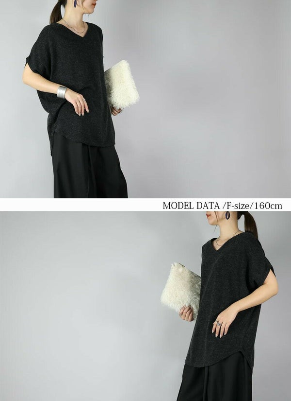 Vネックドルマンニットソー F 【メール便対応可】