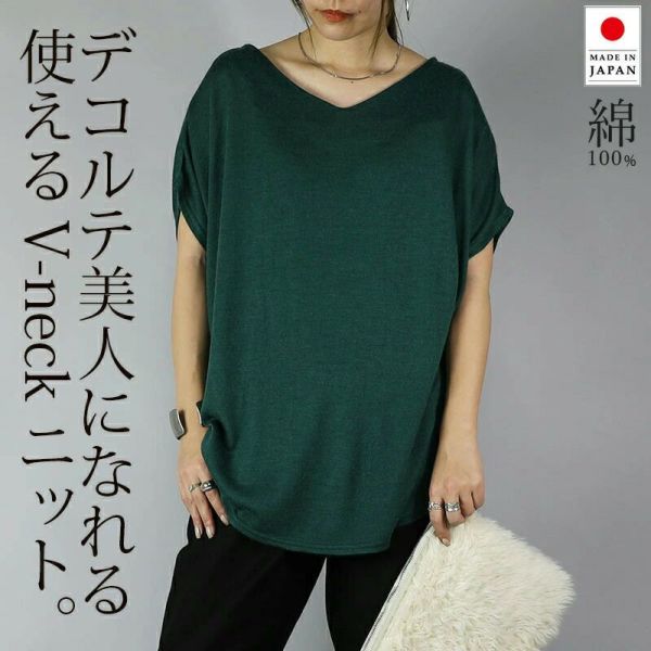 Vネックで顔周りすっきり大人な印象に。安心の日本製で軽くて優しい着心地◎