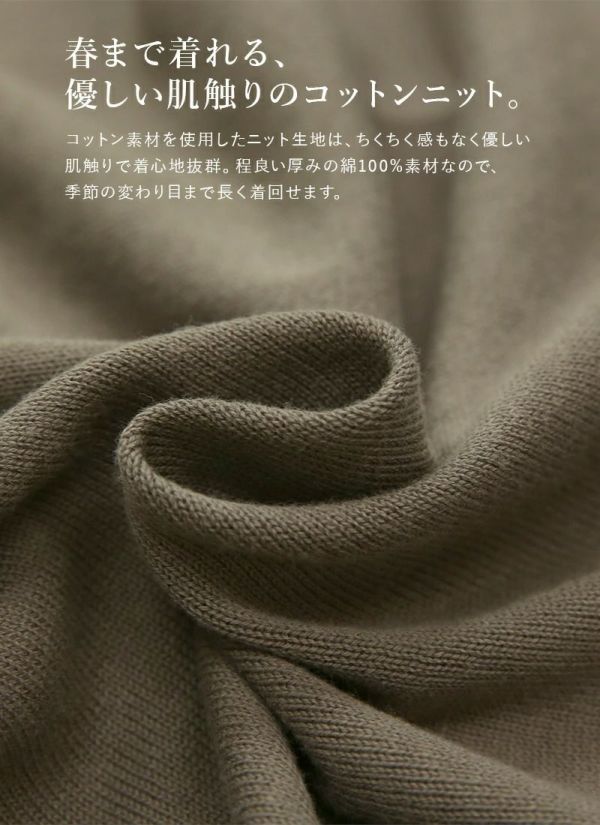 優しい肌触りの綿100%ニット。ロングシーズン着回しを楽しめる♪