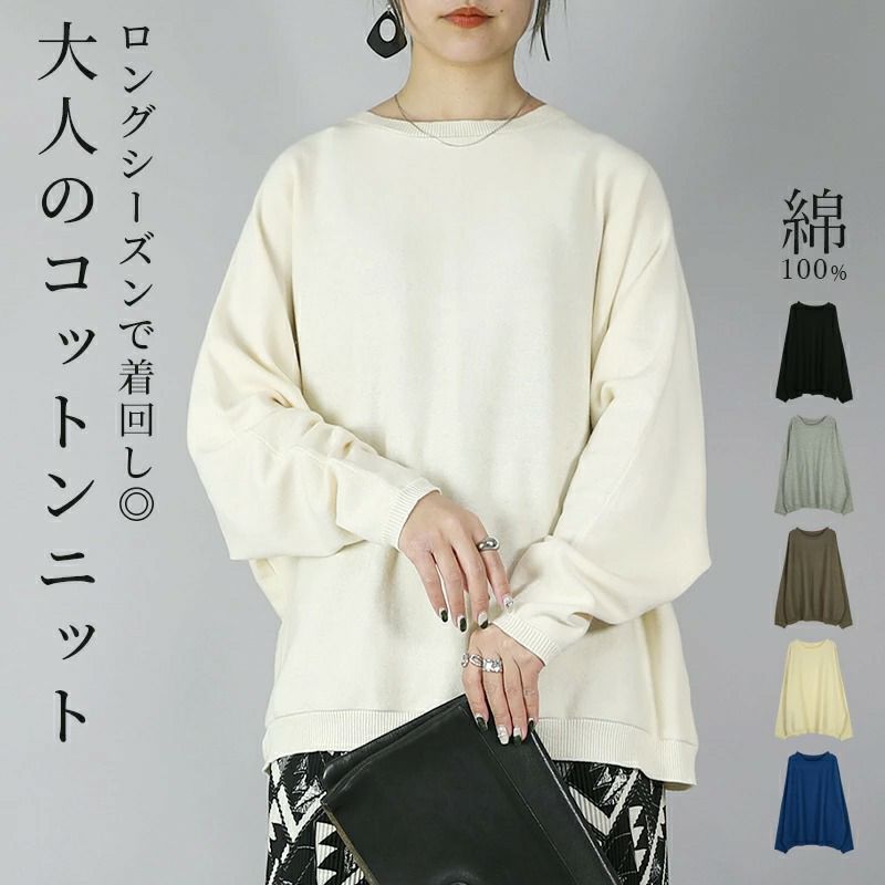 優しい肌触りの綿100%ニット。ロングシーズン着回しを楽しめる♪