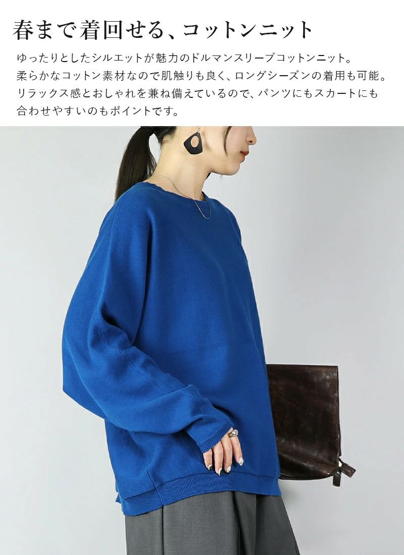 他の画像を見る 優しい肌触りの綿100%ニット。ロングシーズン着回しを楽しめる♪ ドルマンスリーブコットンニット F 【メール便対応可】 販売価格 ¥ 3,960 税込 カートに入れる お気に入りに登録する