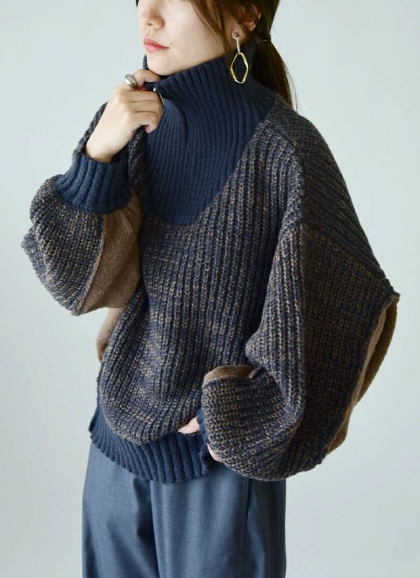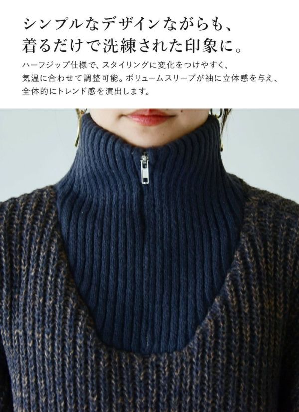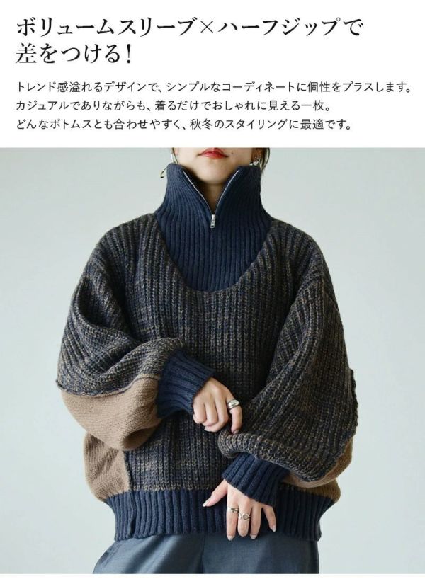 ニット レディース ハーフジップ ボリュームスリーブ ぽわん袖 ボリューム袖 トップス 長袖 ふんわり ボリューム トレンド お洒落 大人可愛い ZIP オーバーサイズ ゆったり ハイネック タートルネック 暖かい ミックスカラー 配色 オフ ネイビー ブラック 秋 冬 24aw AW, M エム andit_ and it_ andit ANDIT_ ANDIT あんどいっと アンドイット 新作 NEW カジュアル ナチュラル きれいめ 大人可愛い 大人女子 お洒落 トレンド シンプル ニュアンス プチプラ ファッション レディースファッション 20 30 40 50 20代 30代 40代 50代