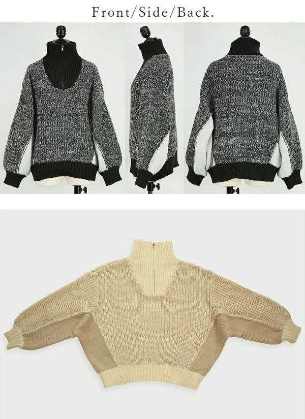 5. ハーフジップボリュームスリーブニット M 【メール便対応不可】