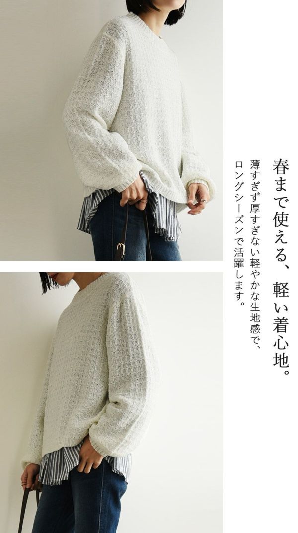 着るだけでこなれ感をプラスする、表情豊かなニット。軽い着心地だから、季節の変わり目まで活躍◎