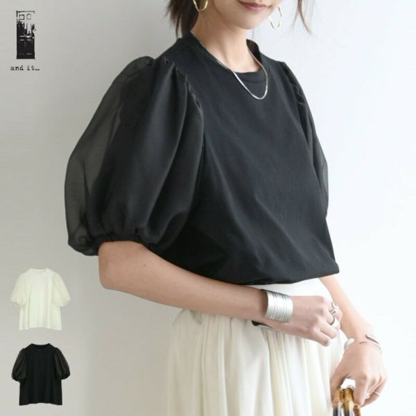 5分袖 半袖 トップス ボリュームスリーブ パフスリーブ 袖コンシャス 無地 Aライン 重ね着 着回し オフ ホワイト 白 黒 ブラック andit_ and it_ andit ANDIT_ ANDIT あんどいっと アンドイット 無地 Mサイズ ゆったり ワイド 楽ちん M 春 夏 春夏 スプリング サマー ママ服 カジュアル 大人 トレンド レイヤード オンオフ 大人女子 大人可愛い きれいめ ラフ シンプル ナチュラル ゆる 体型カバー カバー レディース ファッション レディースファッション 20 30 40 50 20代 30代 40代 50代