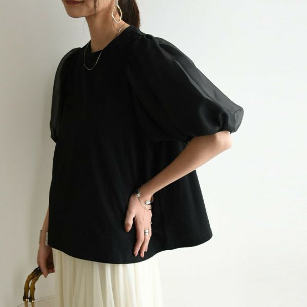 5. オーガンジーパフスリーブ半袖トップス M 【メール便対応可】