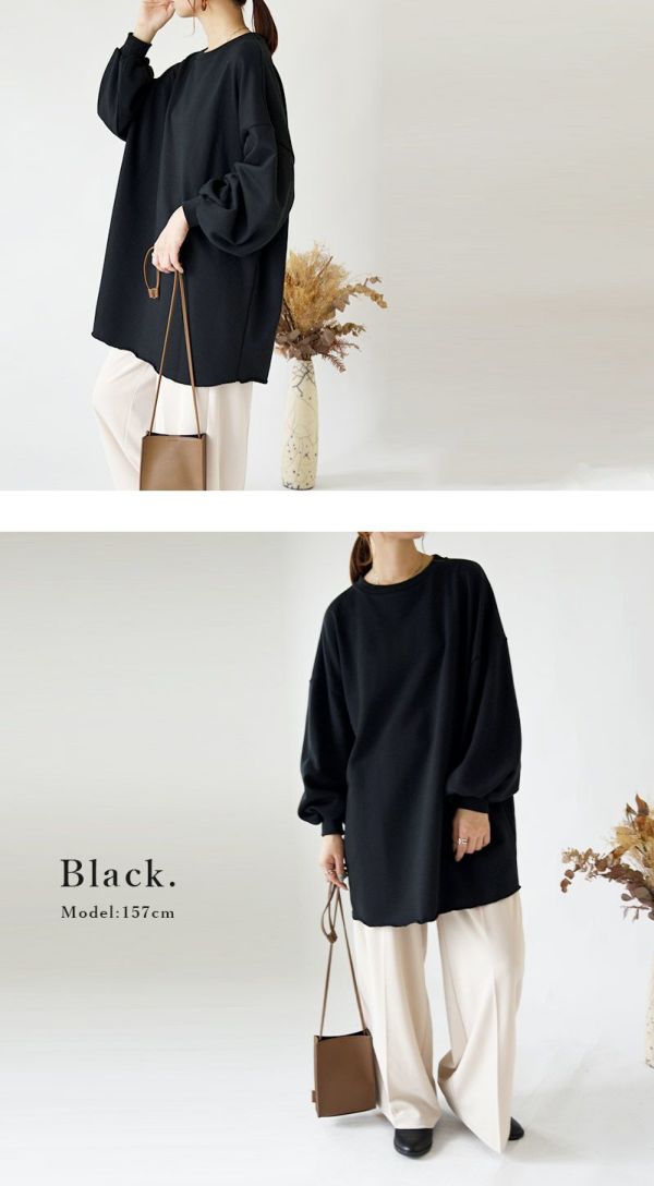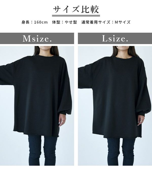 5. ボリュームスリーブスウェットチュニック M L 【メール便対応不可】