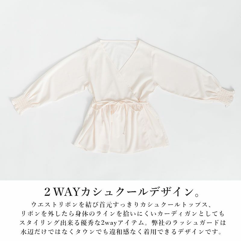 他の画像を見る 羽織りとしても活躍する2wayデザイン!夏のお出かけも安心♪高機能ラッシュガード! ラッシュガードギャザー切替シャーリングスリーブカシュクール M-L 【メール便対応可】 販売価格 ¥ 6,199 税込 カートに入れる お気に入りに登録する