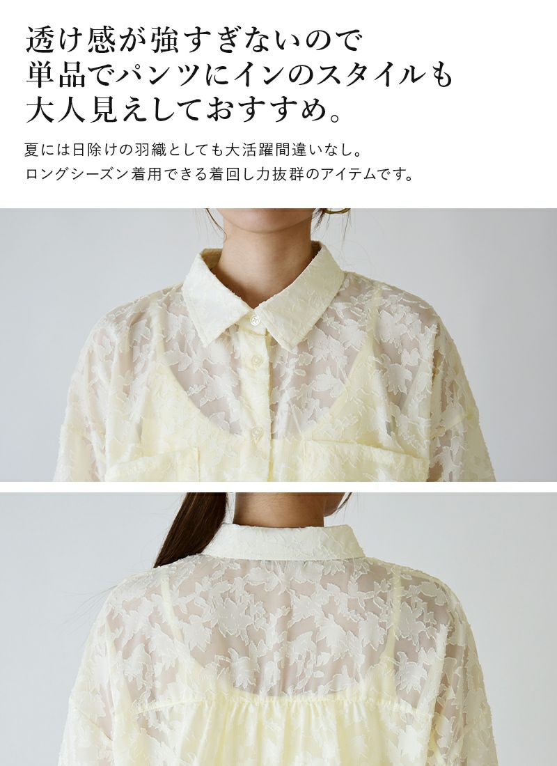 他の画像を見る 上品な透け感で大人の魅力アップ!着るだけでトレンド感を取り入れられるお洒落シャツ☆ シアージャガードオーバーシャツ F 【メール便対応可】 販売価格 ¥ 5,199 税込 カートに入れる お気に入りに登録する