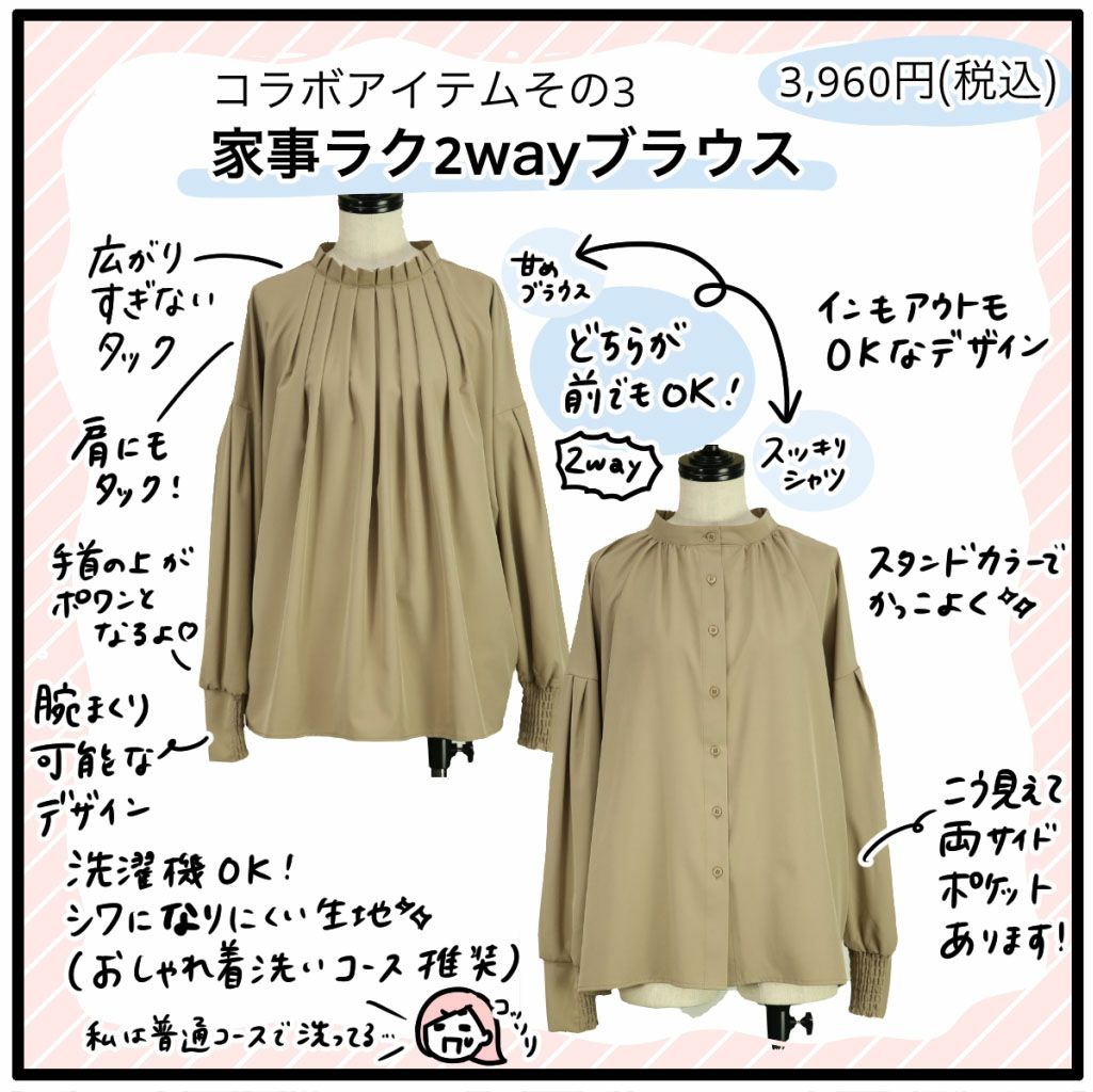 他の画像を見る \待望の大人気漫画家モチコさんとのコラボアイテム/お手入れ楽ちん!家事も楽々できて、きれいめにもカジュアルにも着られる前後2wayブラウス。 モチコさんコラボ家事ラク2wayブラウス F 【メール便対応可】 販売価格 ¥ 3,960 税込 カートに入れる お気に入りに登録する