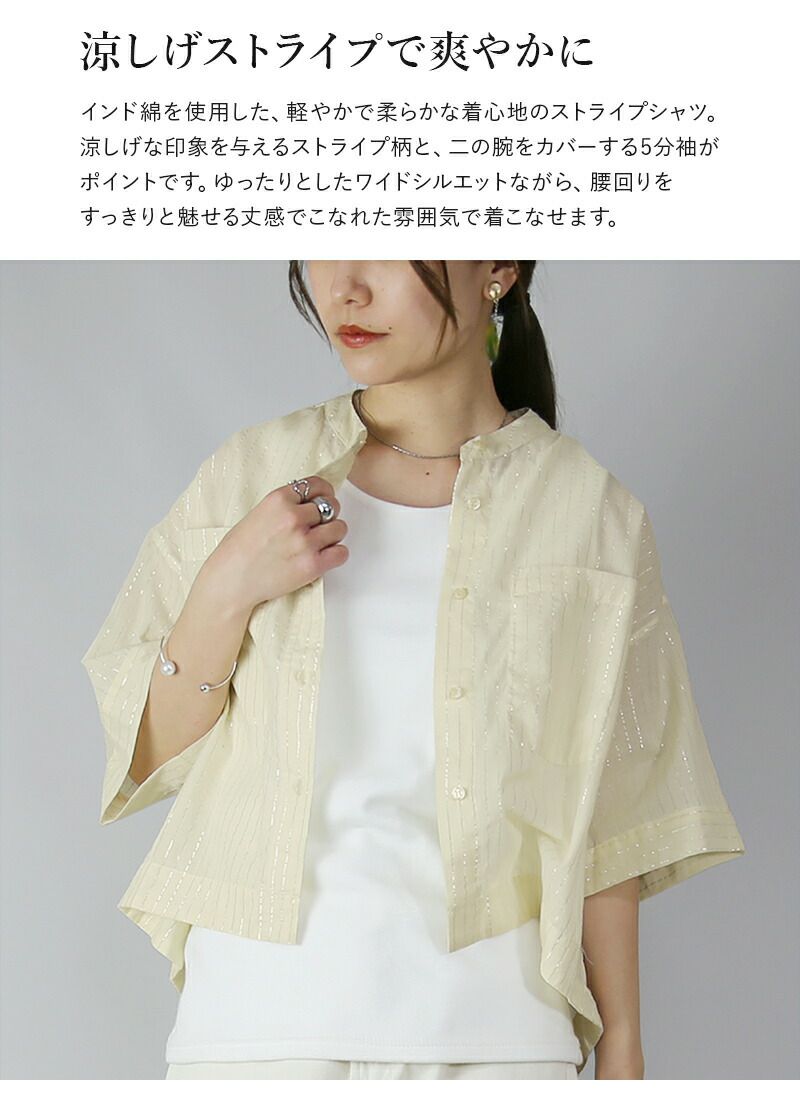 他の画像を見る ストライプ×インド綿で爽やかな印象に!ゆるっとオーバーサイズでトレンド感のある着こなしが叶う。 【受注発注】 インドストライプワイド5分袖シャツ F 【メール便対応可】 販売価格 ¥ 2,999 税込 詳細を見る お気に入りに登録する