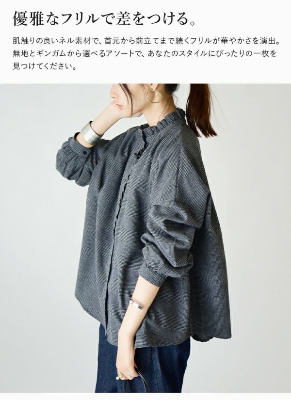 ブラウス レディース ネル ネル生地 ネル素材 フリル ワイド ワイドシルエット トップス 長袖 起毛 ほっこり ふんわり 大人可愛い ナチュラル カジュアル ドロップショルダー ゆったり 楽ちん ラフ 体型カバー アイボリー グレージュ ブラック チェック 黒 白 秋 冬 24aw AW, M-L M L andit_ and it_ andit ANDIT_ ANDIT あんどいっと アンドイット NEW カジュアル ナチュラル きれいめ 大人可愛い 大人女子 お洒落 おしゃれ トレンド シンプル ニュアンス ゆったり 楽ちん ラフ 体型カバー ぽっちゃり プチプラ ファッション レディースファッション ママ服 20 30 40 50 20代 30代 40代 50代