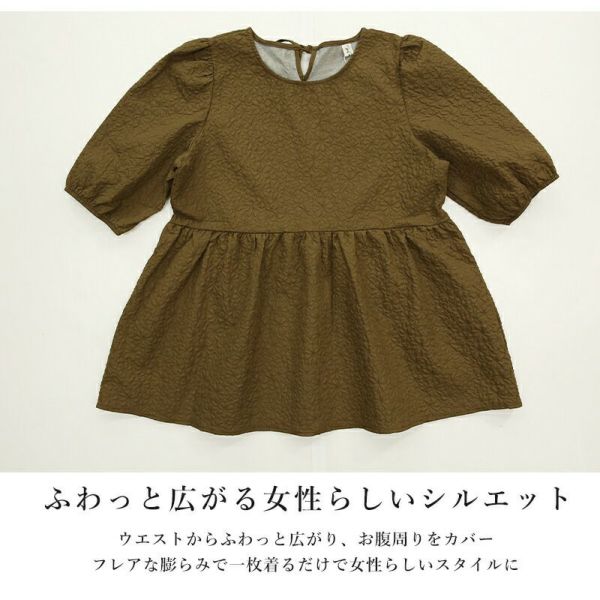 5. ふくれジャガードパフスリーブブラウス M L 【メール便対応可】