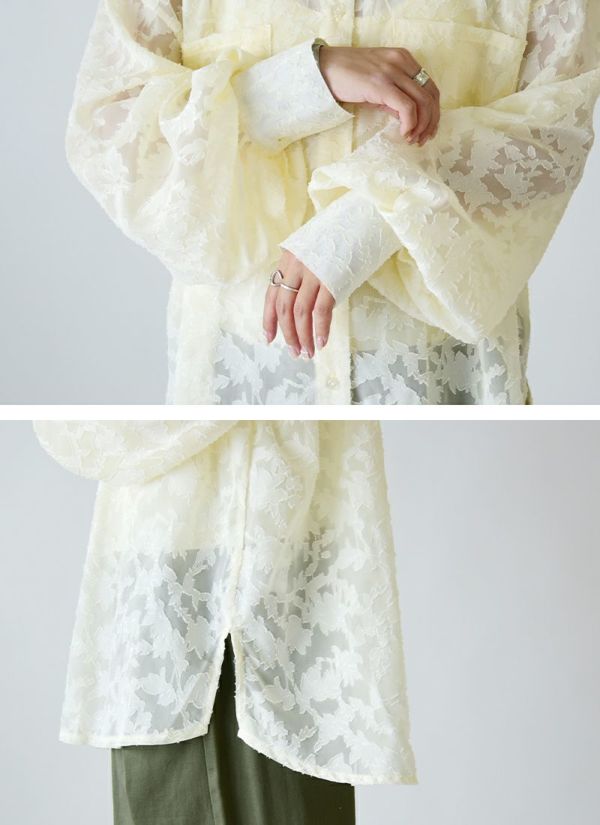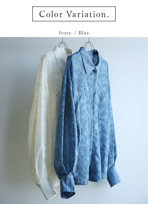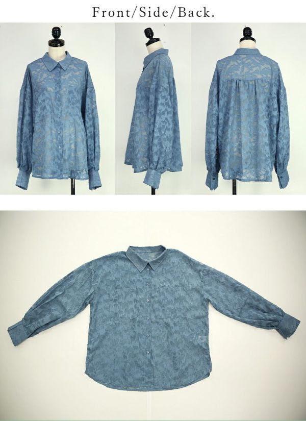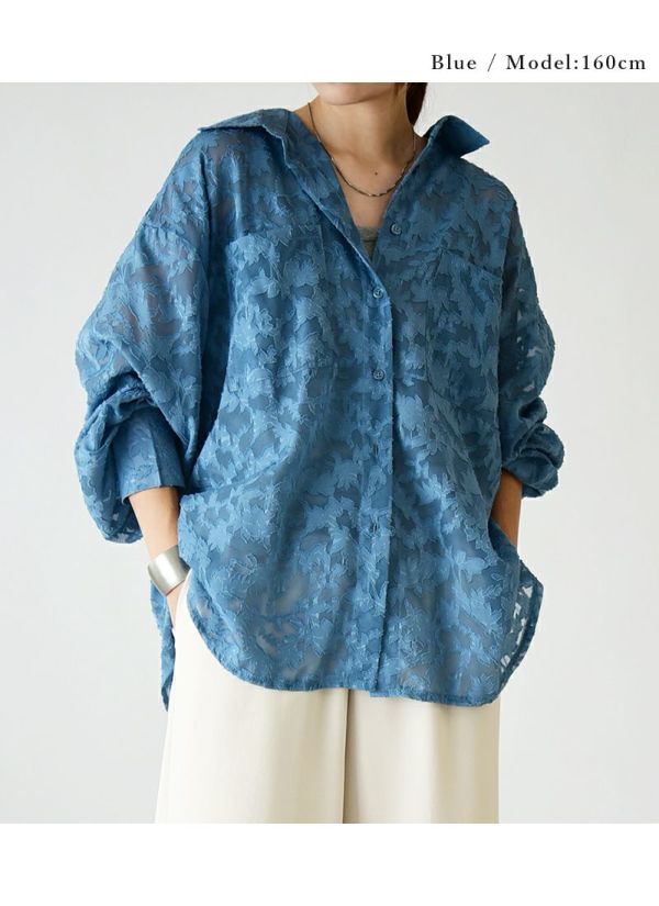 シャツ レディース シアー ジャガード オーバーシャツ トップス 長袖 透け感 シアー シアーシャツ 柄シャツ 柄 ゆったり お洒落 大人可愛い ボリュームスリーブ ボリューム袖 ふんわり 羽織り 羽織 着回し 重ね着 レイヤード アイボリー ブルー 白 青 秋 冬 24aw AW, F フリー フリーサイズ andit_ and it_ andit ANDIT_ ANDIT あんどいっと アンドイット 新作 NEW カジュアル ナチュラル きれいめ 大人可愛い 大人女子 お洒落 トレンド シンプル ニュアンス プチプラ ファッション レディースファッション 20 30 40 50 20代 30代 40代 50代