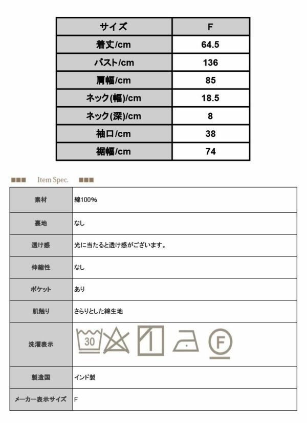 涼感漂う軽やかなインド綿。ゆったり身幅で着心地も涼やか♪