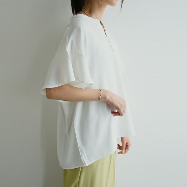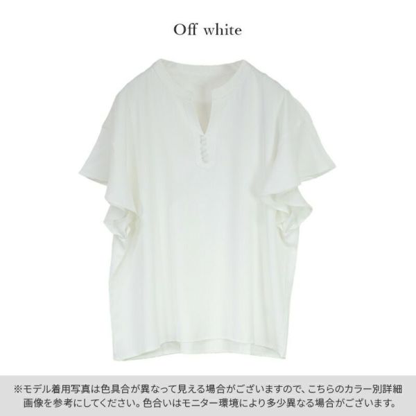 トップス ブラウス レディース 春夏 半袖 防汚加工 トップス 撥水 撥油 効果 汚れにくい シミになりにくい 落ちやすい 食べこぼし 家事 雨の日 レジャー フレンチスリーブ フリル フリル袖 フリルスリーブ 二の腕カバー 二の腕隠し キーネック Vネック スキッパー すっきり ゆったり 体型カバー オフィス オフィスカジュアル シンプル オフホワイト 白 無地 M-L M L andit_ and it_ andit ANDIT_ ANDIT あんどいっと アンドイット SS 新作 NEW カジュアル ナチュラル きれいめ 大人可愛い 大人女子 お洒落 トレンド シンプル ニュアンス ゆったり 楽ちん ラフ ぽっちゃり プチプラ ファッション レディースファッション ママ服 20 30 40 50 20代 30代 40代 50代