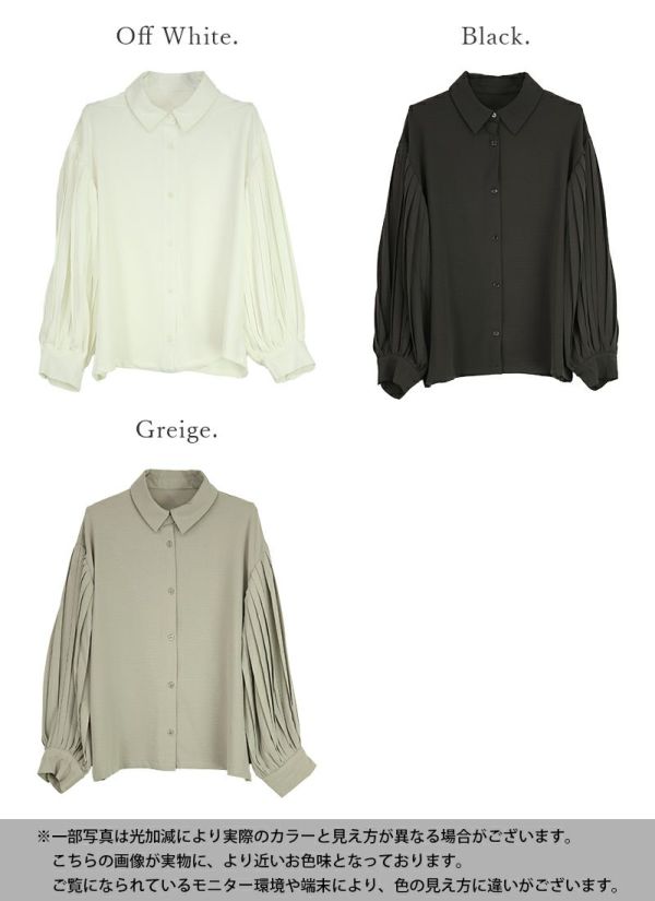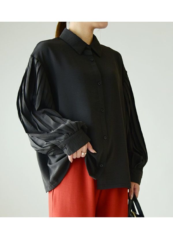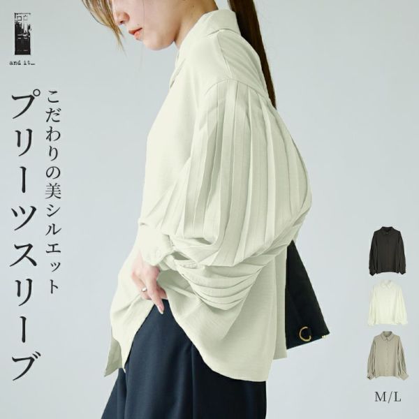 トップス シャツ レディース 長袖 プリーツスリーブ プリーツ シワになりにくい シワが目立たない ボリューム袖 ボリュームスリ―ブ上品 きれいめ 綺麗め ボタン 羽織り ゆったり 楽ちん ラフ オフホワイト ブラック グレージュ 白 黒 秋 冬 24aw AW, M L andit_ and it_ andit ANDIT_ ANDIT あんどいっと アンドイット 新作 NEW カジュアル ナチュラル きれいめ 大人可愛い 大人女子 お洒落 トレンド シンプル ニュアンス プチプラ ファッション レディースファッション 20 30 40 50 20代 30代 40代 50代