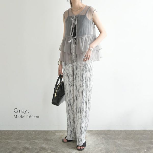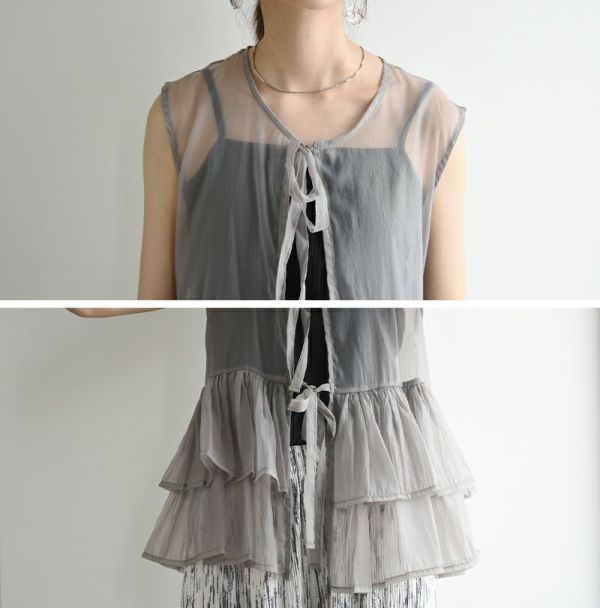 ブラウス レディース 春 夏 オーガンジー フリル トップス ノースリーブ 透け感 シアー 涼感 涼しい 上品 トレンド 綺麗め きれいめ リボン 大人可愛い 重ね着 レイヤード ホワイト アイボリー グレー ブラック 白 黒 andit_ and it_ andit ANDIT_ ANDIT あんどいっと アンドイット SS 新作 NEW カジュアル ナチュラル きれいめ 大人可愛い 大人女子 お洒落 トレンド シンプル ニュアンス M Mサイズ ゆったり 楽ちん ラフ 体型カバー ぽっちゃり プチプラ ファッション レディースファッション ママ服 20 30 40 50 20代 30代 40代 50代