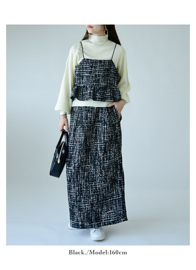 他の画像を見る 普段のスタイリングにプラスするだけ!ラメ感が上品な高見えビスチェ。 ミックスツイードビスチェキャミソール M 【メール便対応可】 販売価格 ¥ 3,599 税込 カートに入れる お気に入りに登録する