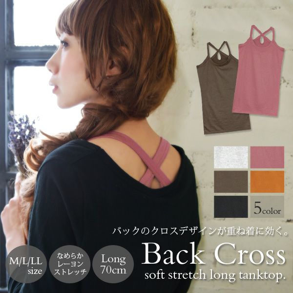 もちもちストレッチバッククロスロングタンクトップ 【メール便対応可】