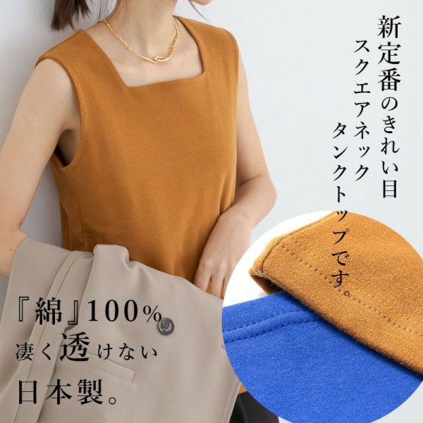 [日本製]凄く透けない大人カワイイスクエアネックタンクトップ F 【メール便対応可】