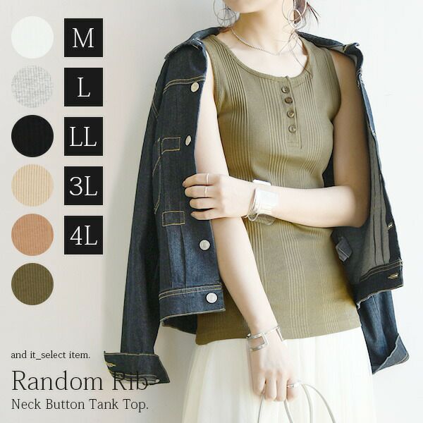 5. 【受注発注】ランダムリブネックボタンタンクトップ 【メール便対応可】