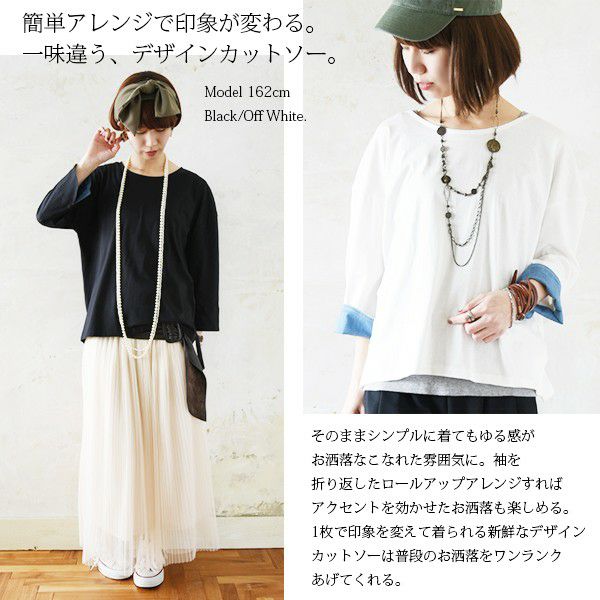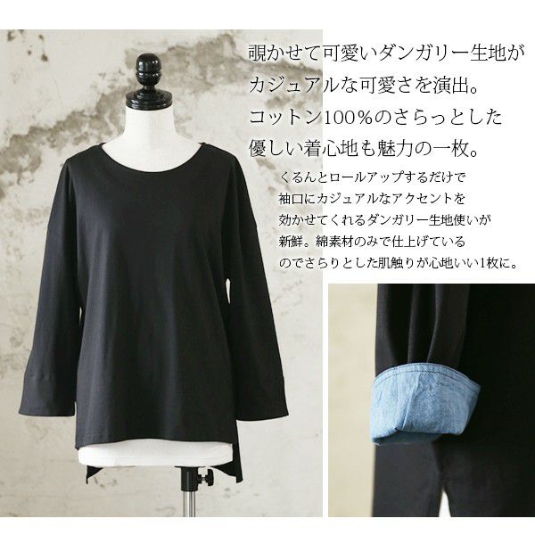 ダンガリースリーブゆるワイドコットンカットソー 【メール便対応可】