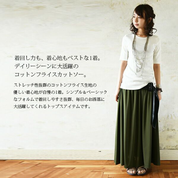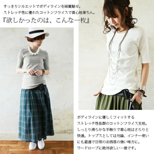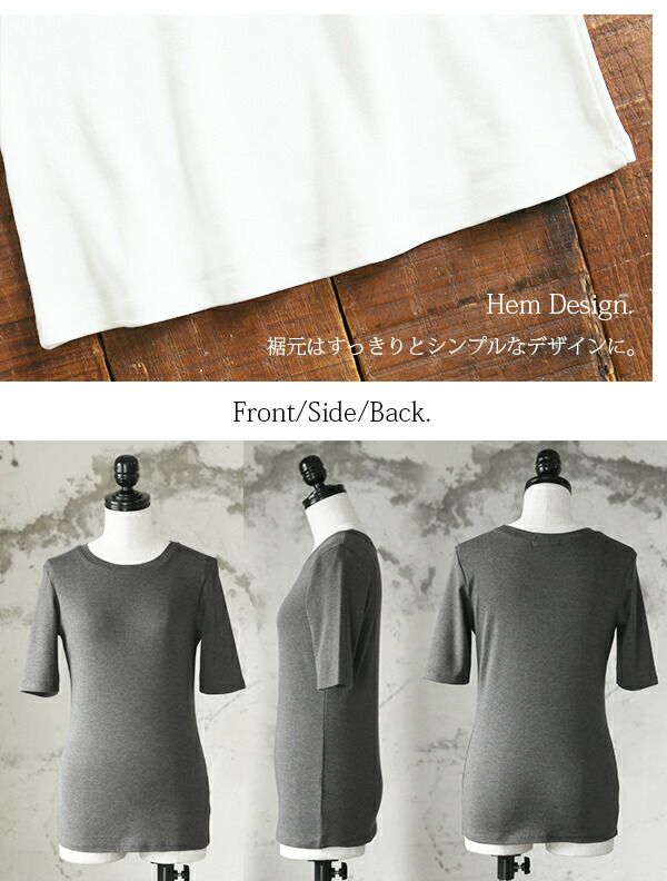 着回し力も着心地も抜群なベーシックフライスカットソー。二の腕をすっきりカバーしてくれる5分袖が嬉しい♪