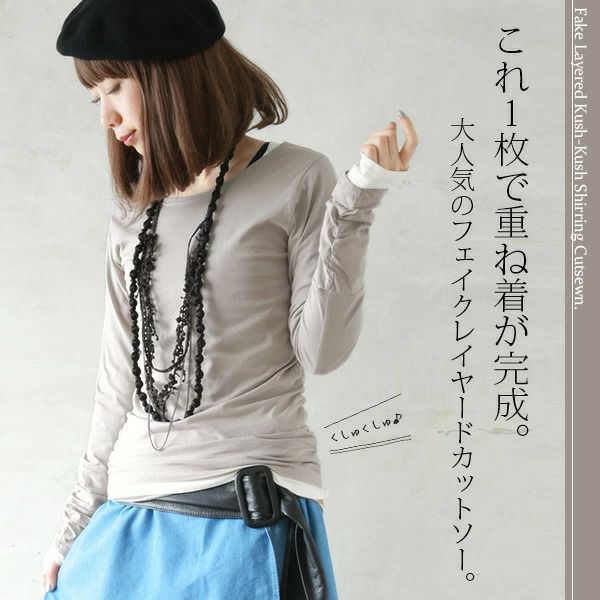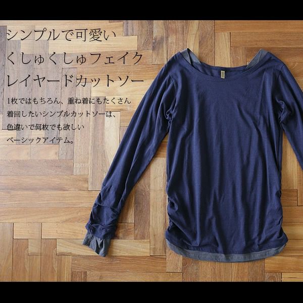 フェイクレイヤードくしゅくしゅシャーリングカットソー(3枚SET) 【メール便対応不可】