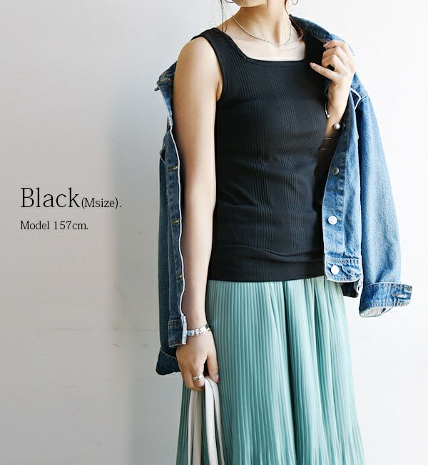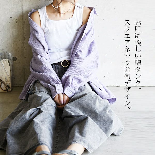 リブですっきりとした印象に☆見せタンクとしても使えて1枚持っているだけで着回し力抜群! 【受注発注】ランダムリブスクエアタンクトップ 【メール便対応可】