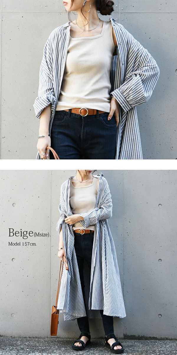 [M]サイズを着用。丈感はお尻が3分の2隠れるくらいになりました。バストやお腹周りにややゆとりがありストレスフリーな着心地です!リブデザインで可愛いので見せタンクとしても使えますね☆