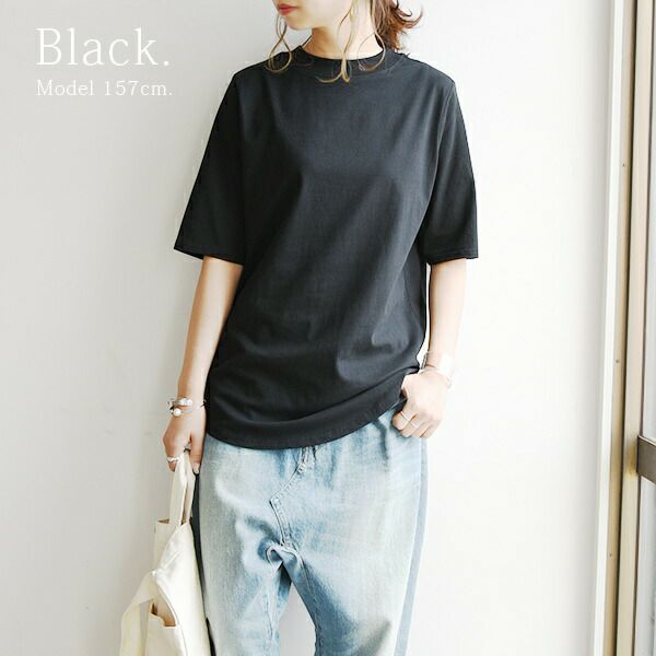 【受注発注】プチハイネック5分袖コットンTシャツ 【メール便対応可】