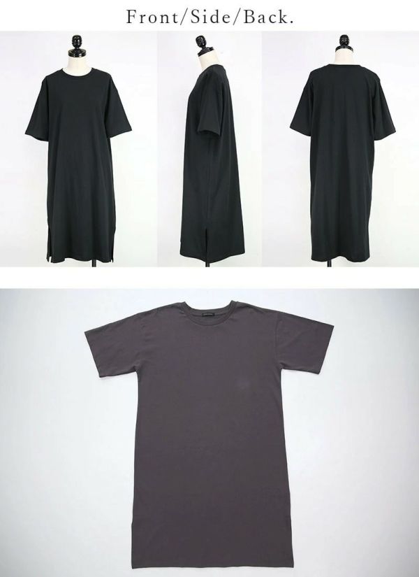 お財布にやさしいヘビーウェイトコットンサイドスリットカットワンピース M L XL 【メール便対応可】