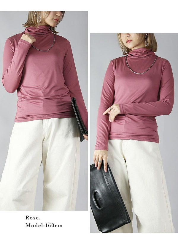 寒い日も首元までぬくもりを。裏微起毛でやさしく包み込む冬の定番インナー♪