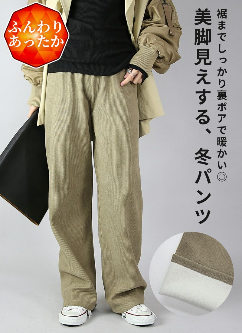 裏ボアでほかほか暖か!ラクなのにきちんと見えする大人のコーデュロイパンツ♪