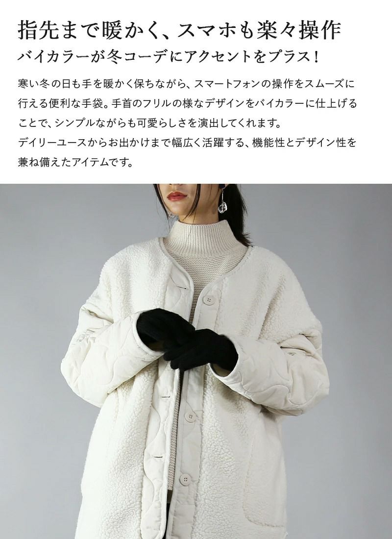 他の画像を見る バイカラーフリルがシンプルで大人可愛い印象に♪つけたままスマホを触れる便利アイテム! スマホ対応バイカラーフリルニット手袋 【メール便対応可】 販売価格 ¥ 1,599 税込 カートに入れる お気に入りに登録する