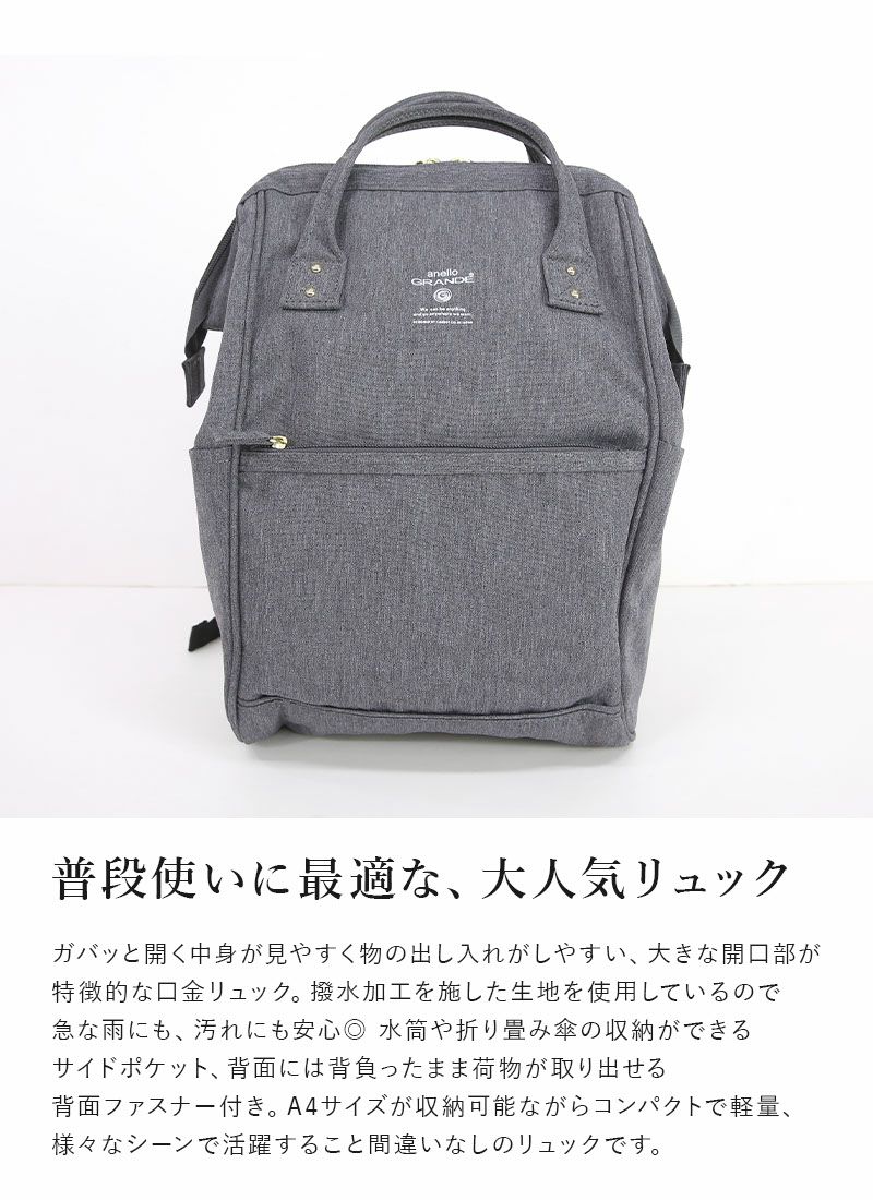他の画像を見る 【受注発注】 anello アネロ GRANDE グランデ 軽量撥水杢ポリSPS口金リュックL GUB3015Z 【メール便対応不可】 販売価格 ¥ 6,820 税込 詳細を見る お気に入りに登録する